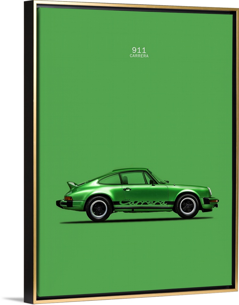<p>Photograph of a green Porsche 911 Carrera printed on a green background</p>
