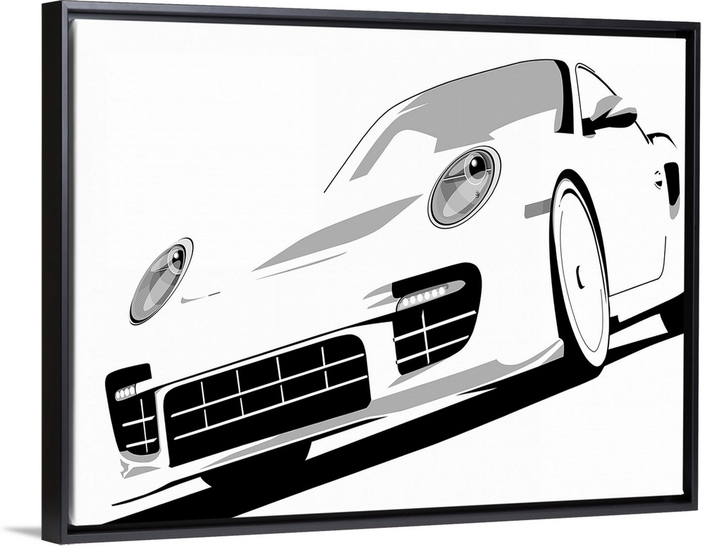 <p>Vector artwork of the Type 996 Porsche 911 GT2. The car is pictured in black and white.</p>