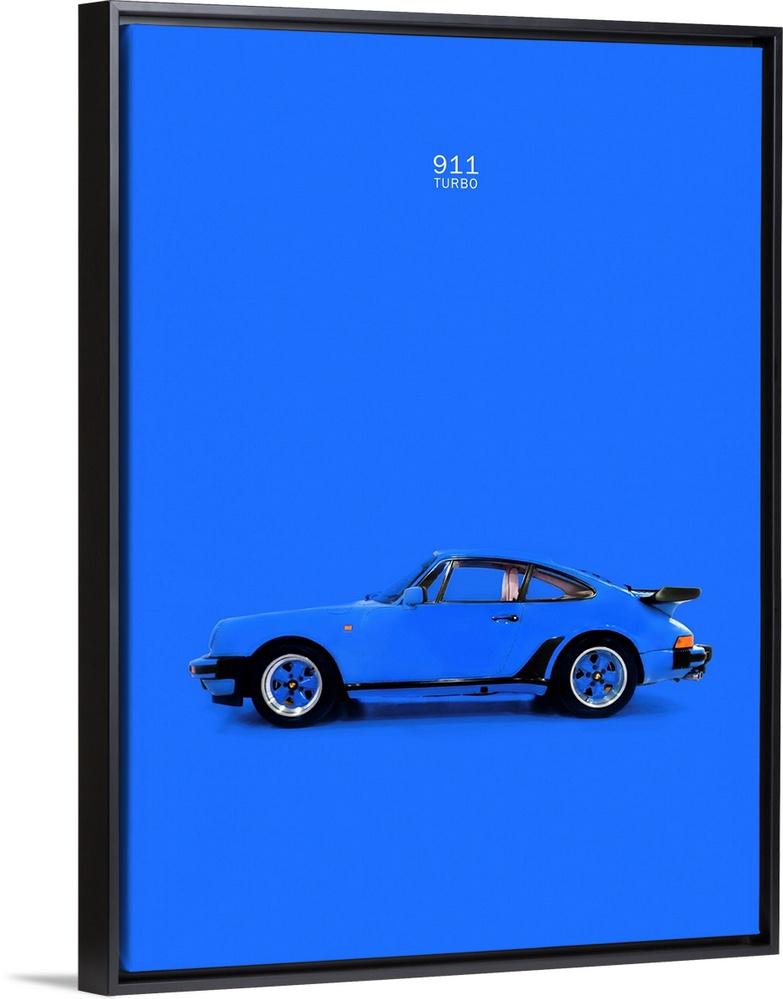 <p>Photograph of a blue Porsche 911 Turbo printed on a blue background</p>