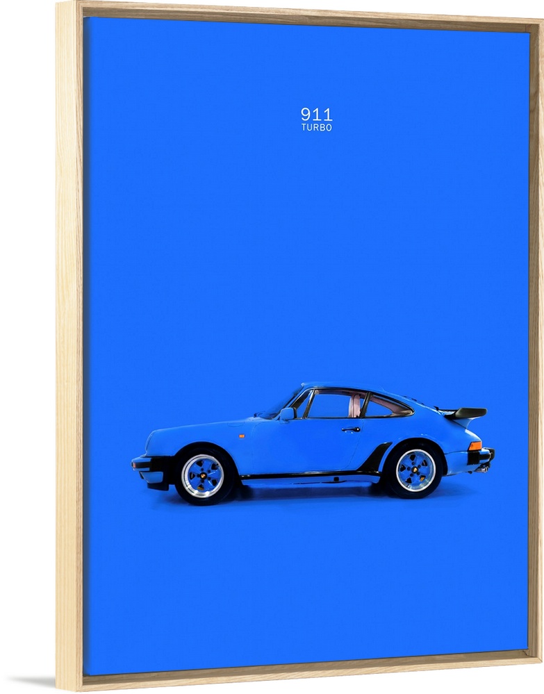 <p>Photograph of a blue Porsche 911 Turbo printed on a blue background</p>