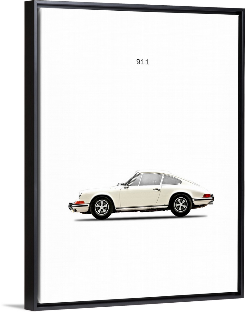 <p>Photograph of a white Porsche 911E 1968 printed on a white background</p>