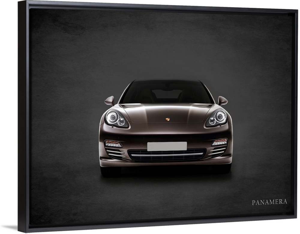 <p>Photograph of a Porsche Panamera printed on a black background with a dark vignette.</p>