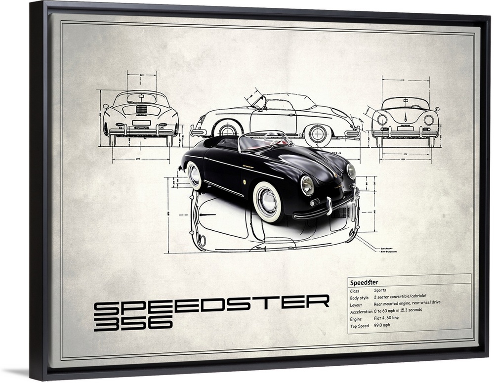 <p>Diagram of a black Porsche Speedster 1959 printed on a white background</p>