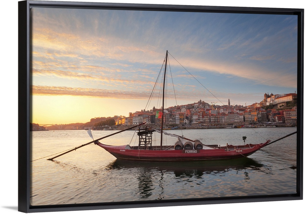 <p>Port wine boats moored on the south bank of Douro River, Porto, Portugal</p>