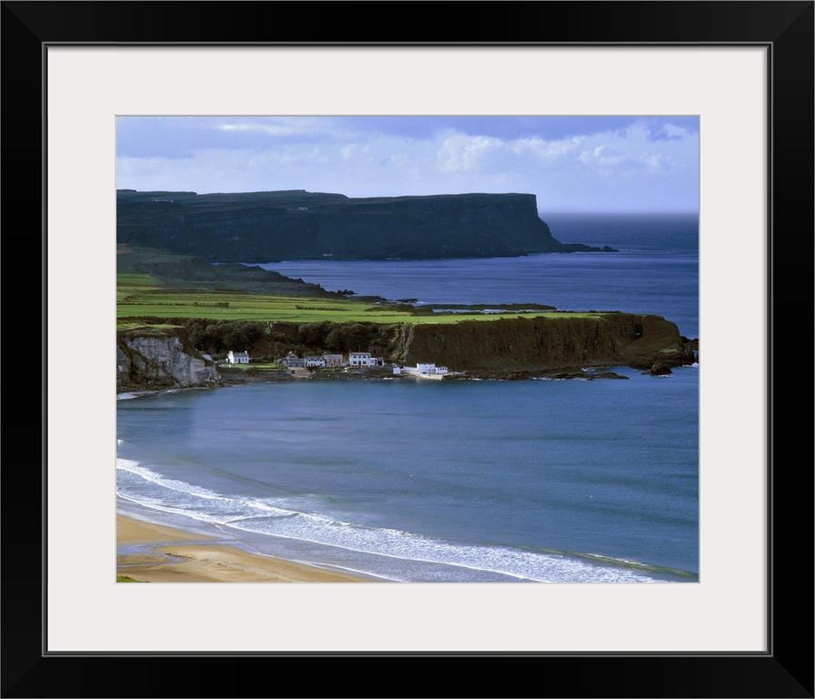 <p>Northern Ireland, County Antrim, Port Bradden. Port Bradden, on Whitepark Bay, is dwarfed by cliffs off Antrim Coast, in Northern Ireland.</p>