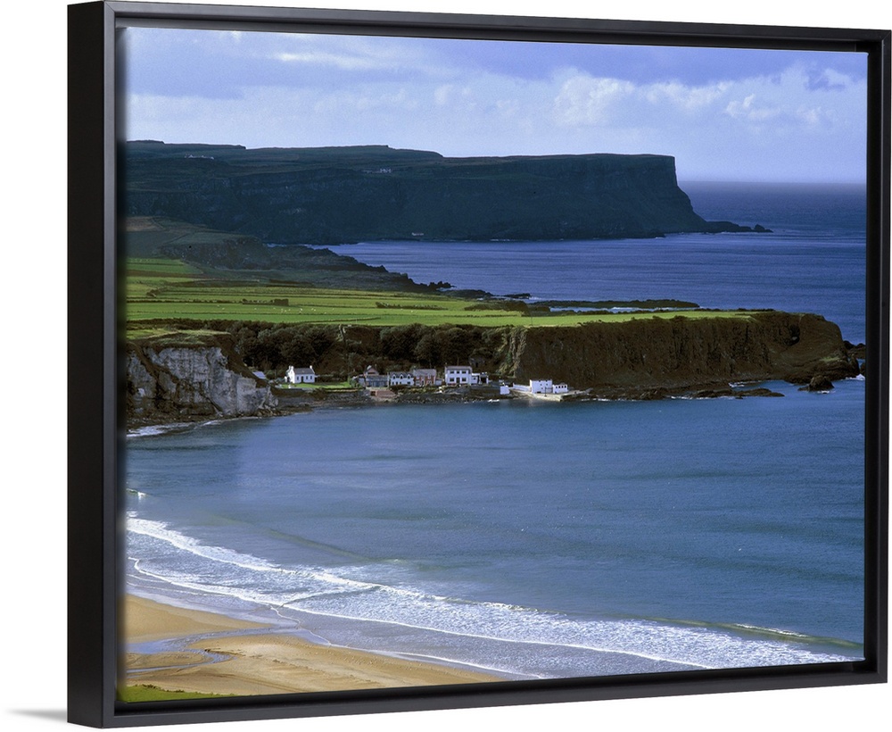 <p>Northern Ireland, County Antrim, Port Bradden. Port Bradden, on Whitepark Bay, is dwarfed by cliffs off Antrim Coast, in Northern Ireland.</p>