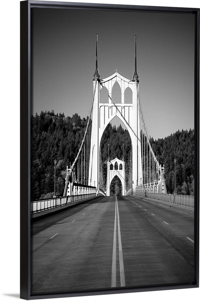 <p>Black and white photograph of St. John's Bridge in Portland, Oregon.</p>