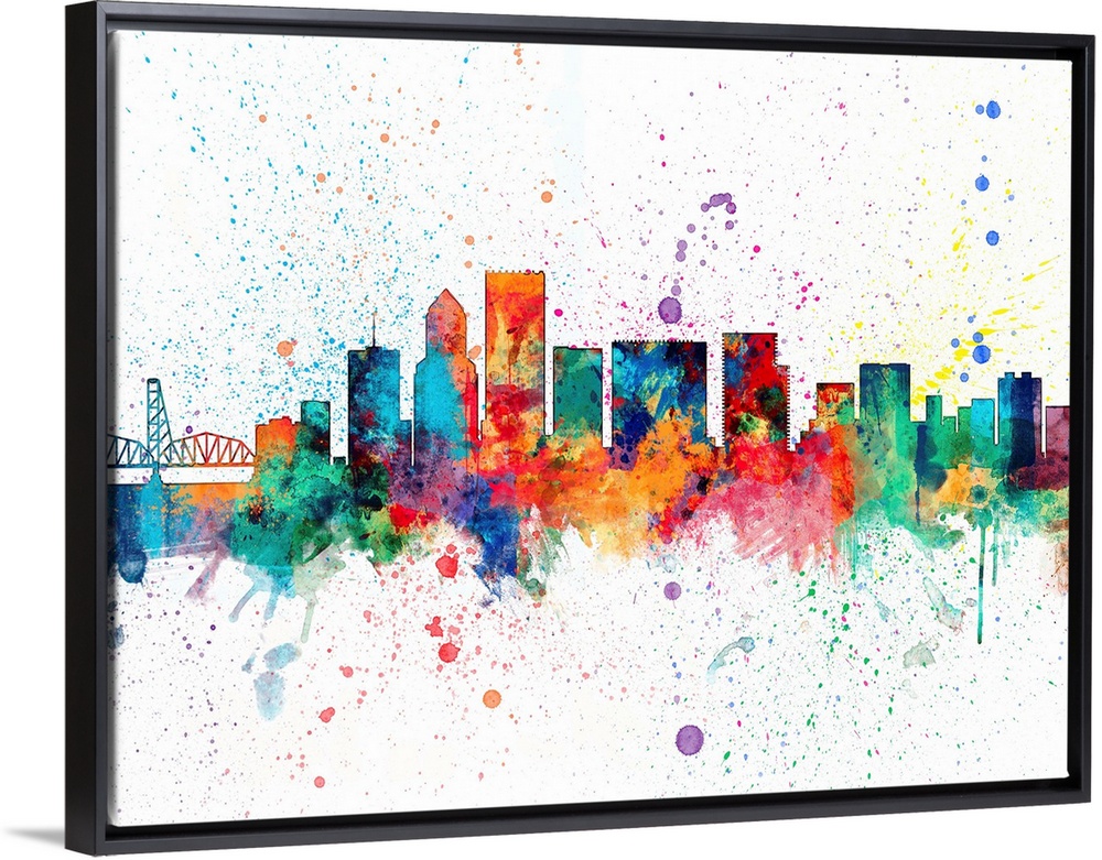 <p>Wild and vibrant paint splatter silhouette of the Portland skyline.</p>