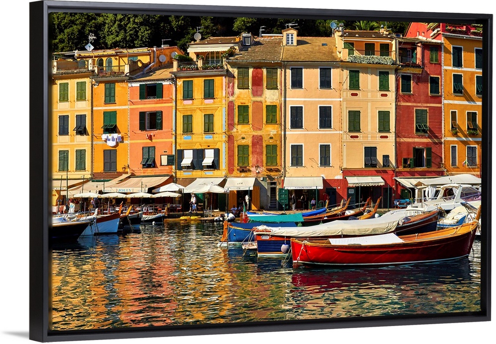 <p>Small boats and colorful old houses in Portofino Harbor, Liguria, Italy.</p>