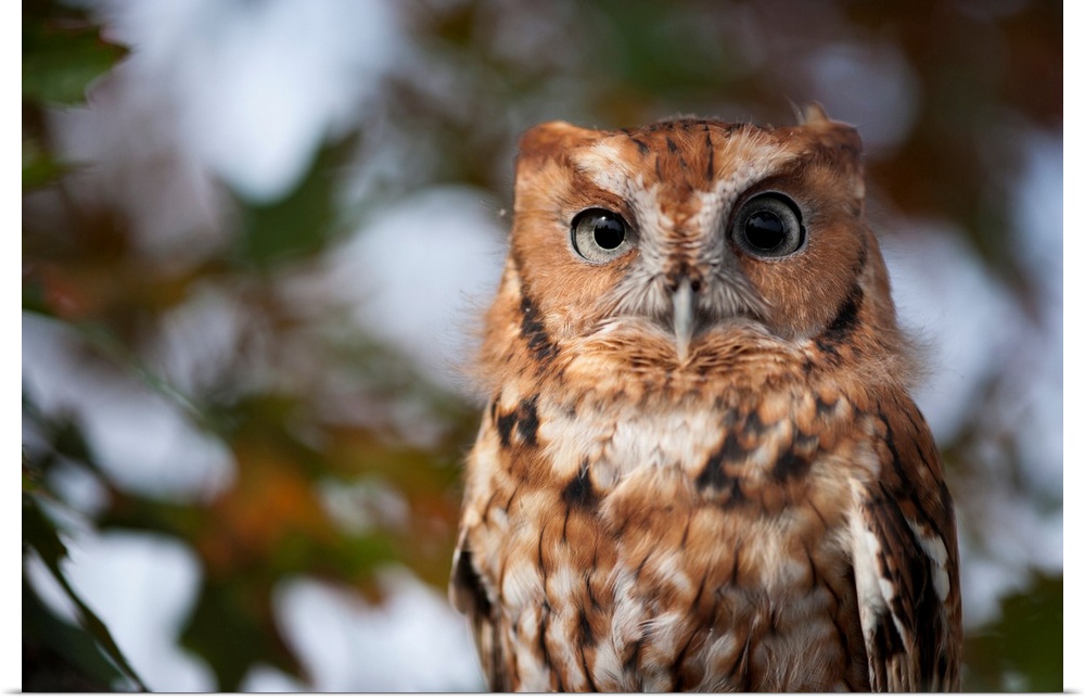 <p>Portrait of a captive eastern screech owl (megascops asio) at Ryerson woods, Deerfield, Illinois, united states of America.</p>