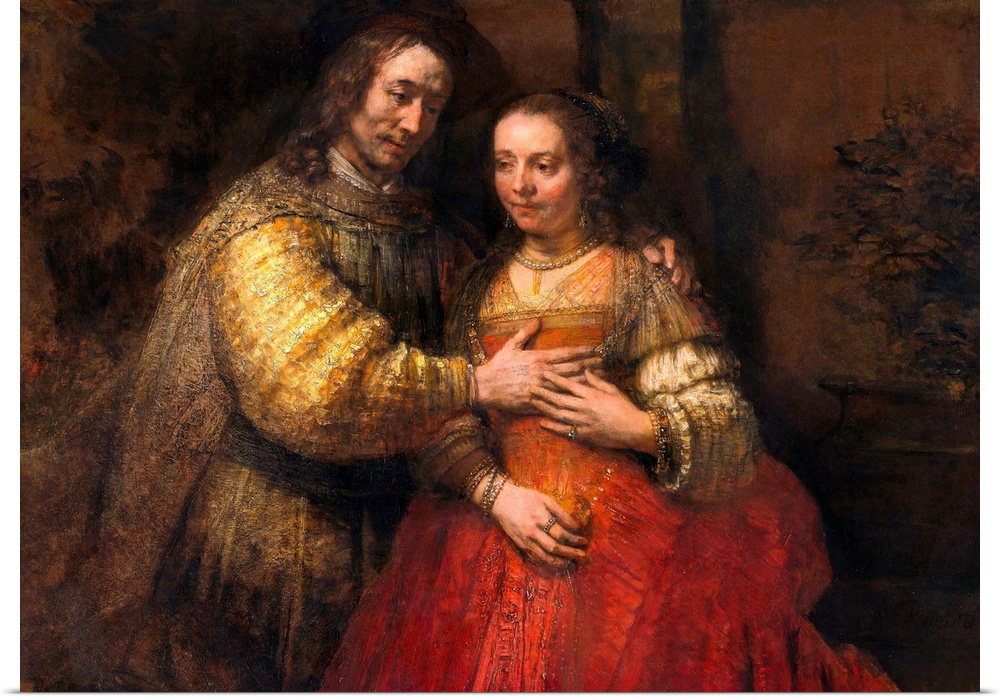 <p>Portrait of a Couple as Figures from the Old Testament, known as 'The Jewish Bride,' ca. 1665-1669. Oil on canvas, 166.5 x 121.5 cm (65.5 x 47.8 in). Rijksmuseum, Amsterdam, Netherlands.</p>