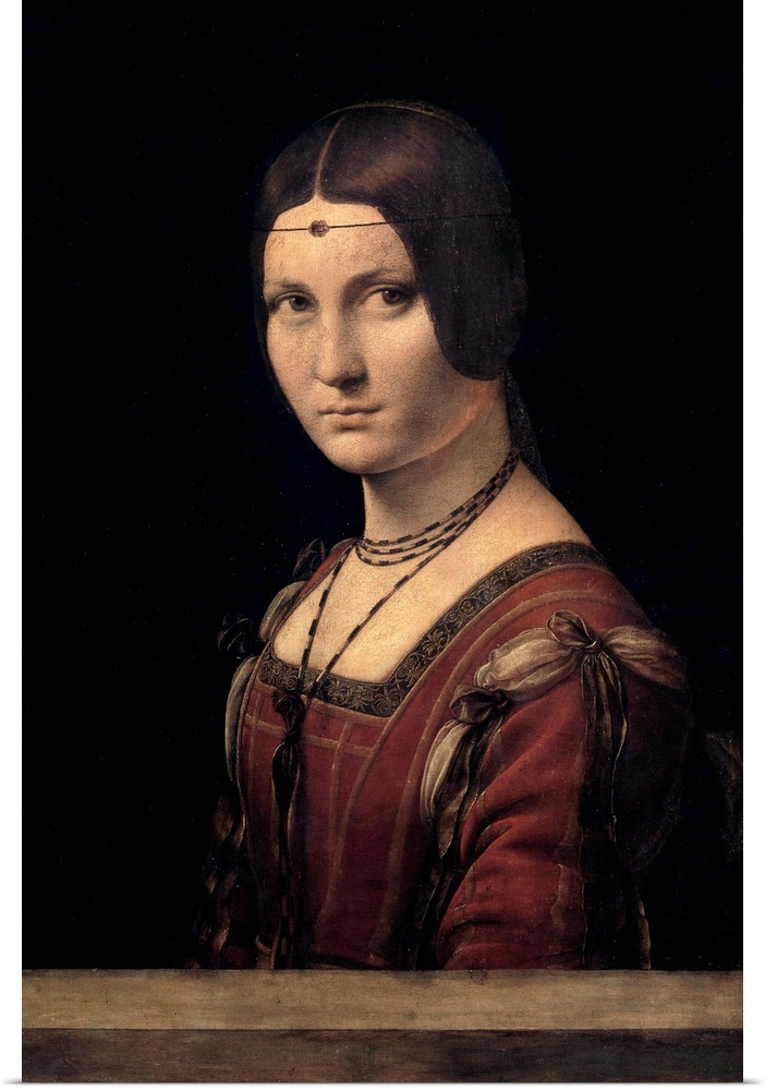 <p>Ritratto di dama. Portrait of a court lady of Milan, wrongly called la Belle Ferronniere. Painting by Leonardo da Vinci (Leonardo de Vinci) (1452-1519), 15th century. 0,63 x 0,45m. Louvre Museum, Paris</p>
