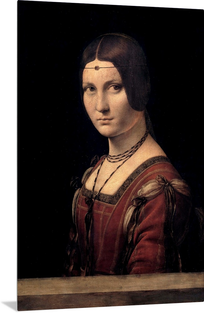 <p>Ritratto di dama. Portrait of a court lady of Milan, wrongly called la Belle Ferronniere. Painting by Leonardo da Vinci (Leonardo de Vinci) (1452-1519), 15th century. 0,63 x 0,45m. Louvre Museum, Paris</p>