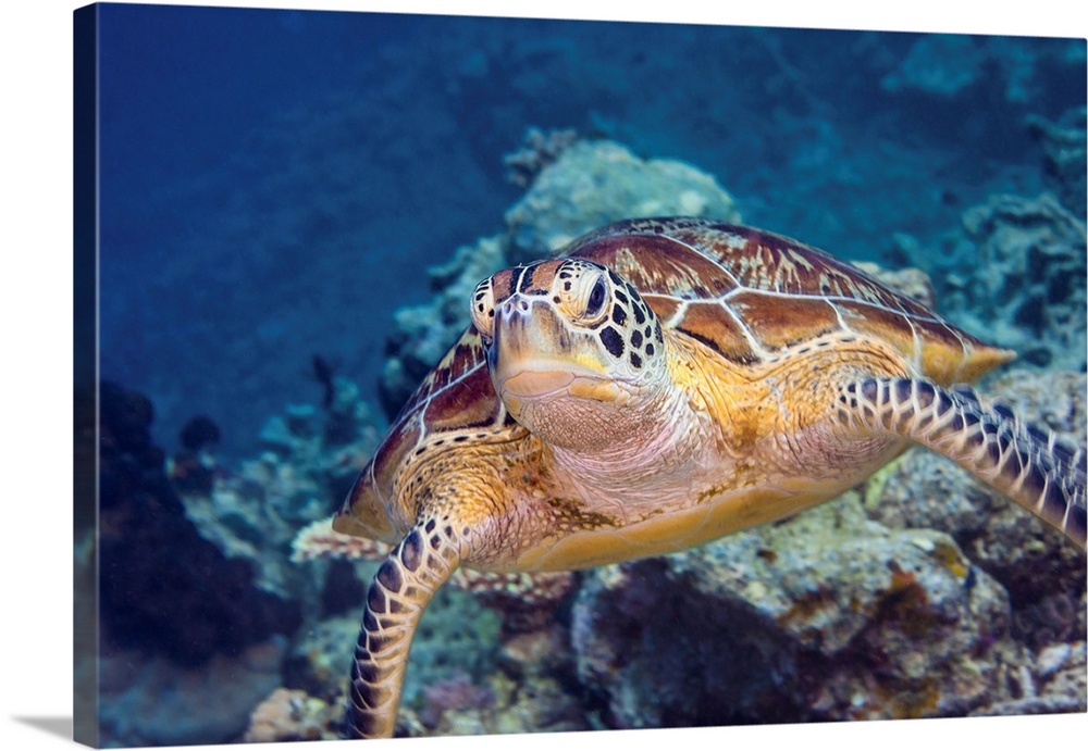 <p>Portrait of a green turtle in the waters of Maratua, Indonesia.</p>