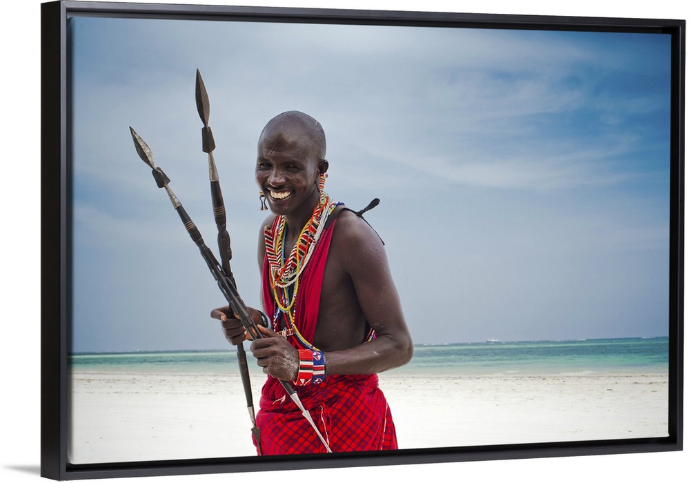 <p>Portrait Of A Maasai Warrior In Africa, Diani Beach</p>