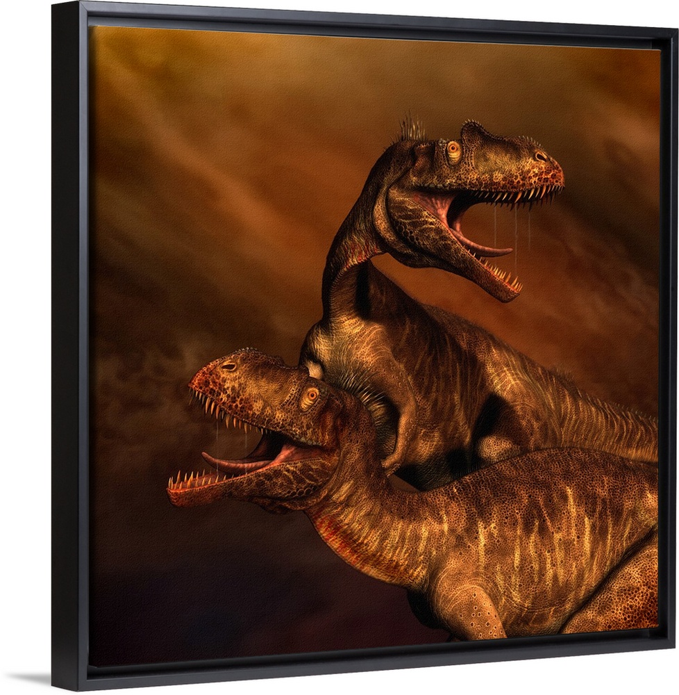 <p>Portrait of a pair of Megalosaurus dinosaurs.</p>