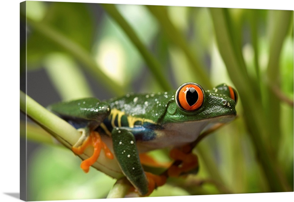 <p>Portrait of a red-eyed tree frog (agalychnis callidryas) at the sunset zoo, Manhattan, Kansas, united states of America.</p>