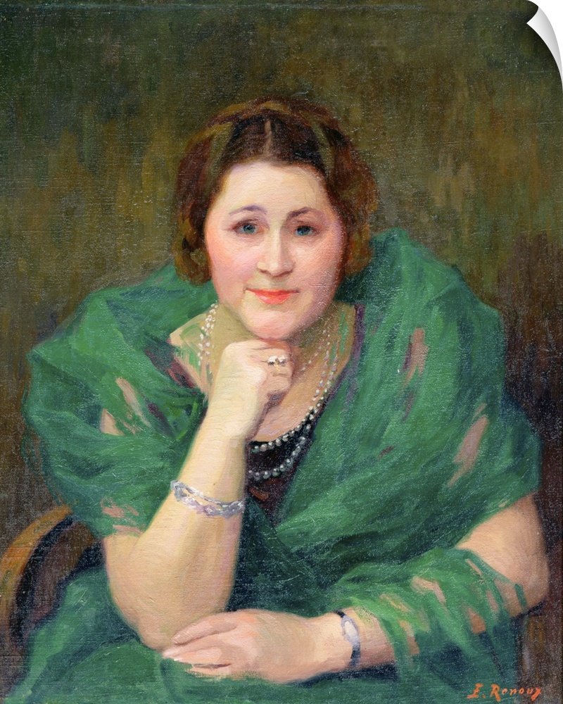 <p>XIR164919 Portrait of a Russian Woman with a Green Scarf (oil on canvas) by Renoux, Jules Ernest (1863-1932); Private Collection; (add. info.: portrait d'une dame russe a l'echarpe verte); Giraudon; French, out of copyright</p>