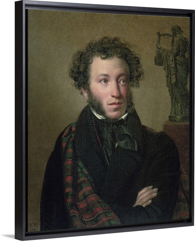 <p>BAL67571 Portrait of Alexander Pushkin, 1827 (oil on canvas) by Kiprensky, Orest Adamovich (1778-1836); 63x54 cm; Tretyakov Gallery, Moscow, Russia; (add. info.: Aleksandr Sergeevich Pushkin (1799-1837) Russian writer); Russian, out of copyright</p>