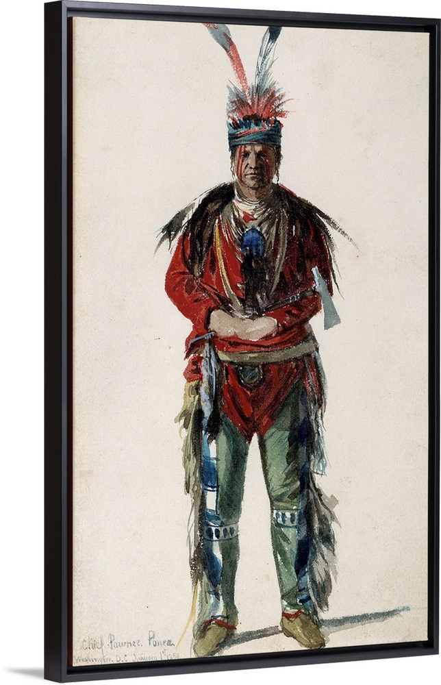 <p>North American Indian : Full-length portrait of an Indian chief of the tribe of Pawnee Ponca. Lithograph by Jules Emile (Jules-Emile) Saintin (1829-1894), 1858. Museum of the New World, La Rochelle, France</p>