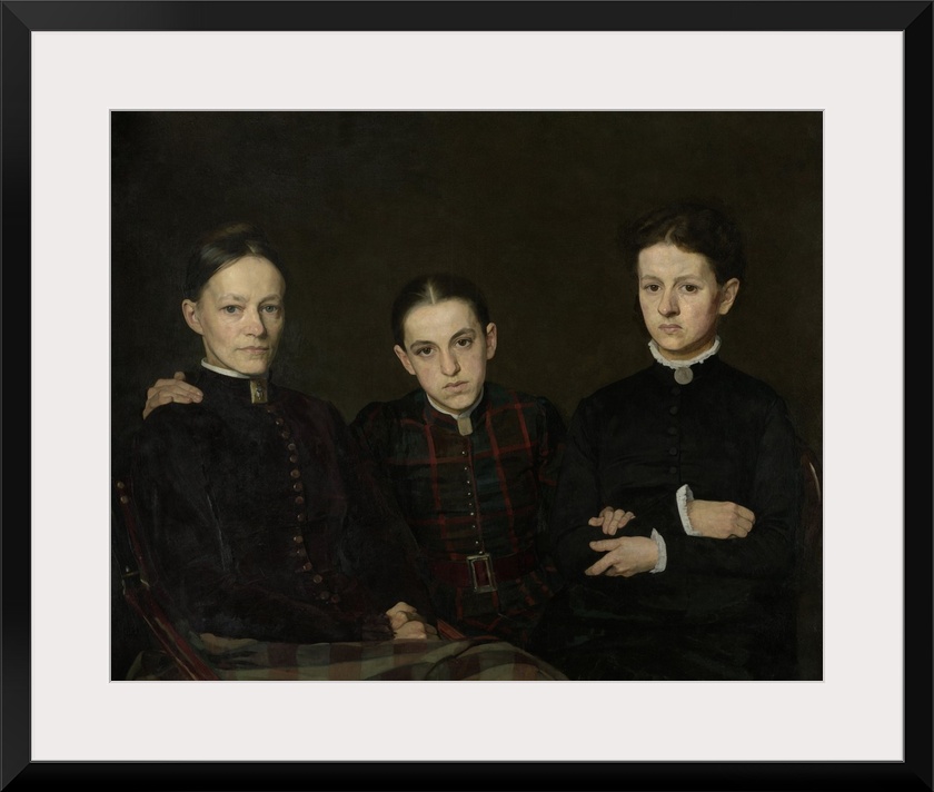 <p>Portrait of Cornelia, Clara and Johanna Veth, by Jan Veth, 1885, Dutch painting, oil on canvas. Three sisters of the artist were depicted with unflattering realist honesty.</p>