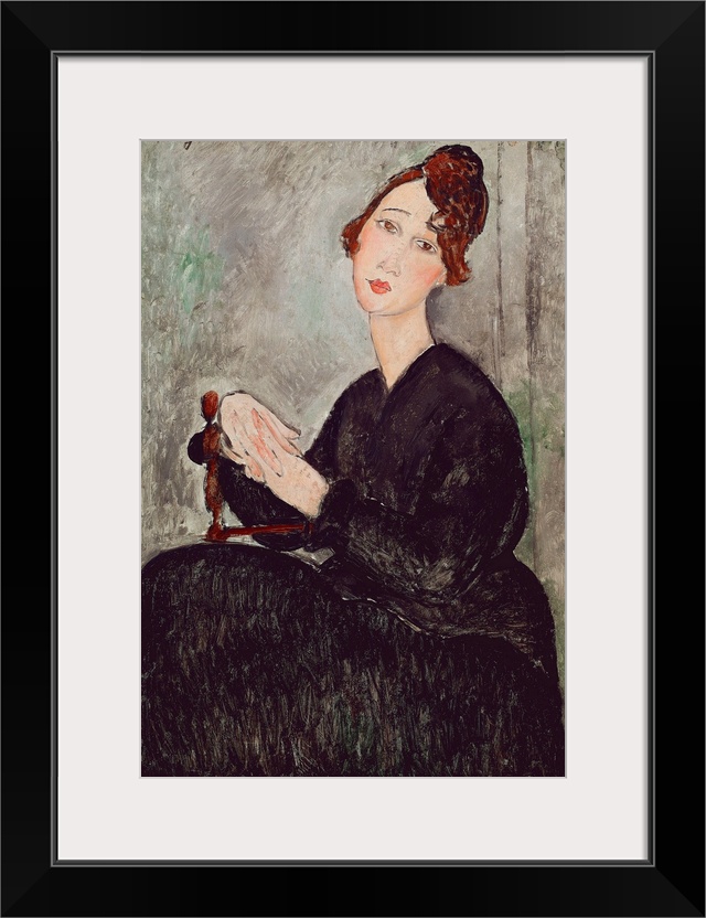 <p>Portrait of Dedie Hayden (D.H.) Woman clothed in black has the melancolic expression. Painting by Amedeo Modigliani (1884-1920) 1918.</p>