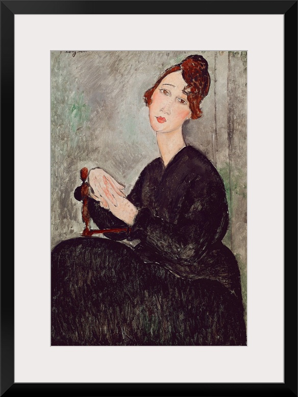 <p>Portrait of Dedie Hayden (D.H.) Woman clothed in black has the melancolic expression. Painting by Amedeo Modigliani (1884-1920) 1918.</p>