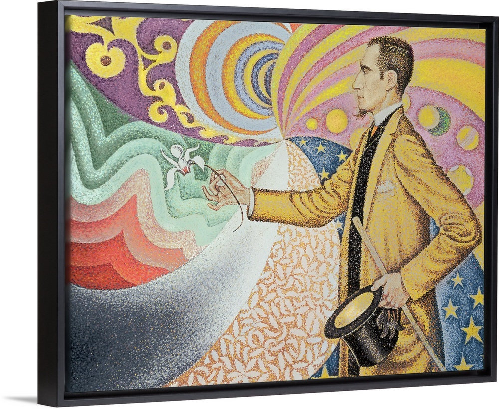 <p>XIR53827 Opus 217. Against the Enamel of a Background Rhythmic with Beats and Angles, Tones and Tints, Portrait of Felix Feneon in 1890 (oil on canvas) by Signac, Paul (1863-1935); 73.5x92.5 cm; Museum of Modern Art, New York, USA; (add. info.: sur l'email d'un fond rythmique de mesures et angles de tons et de teintes; Felix Feneon (1861-1944) art dealer, collector and critic; depiction of optical theorist Charles Henry's recently published colour wheel); Giraudon; French, out of copyright</p>