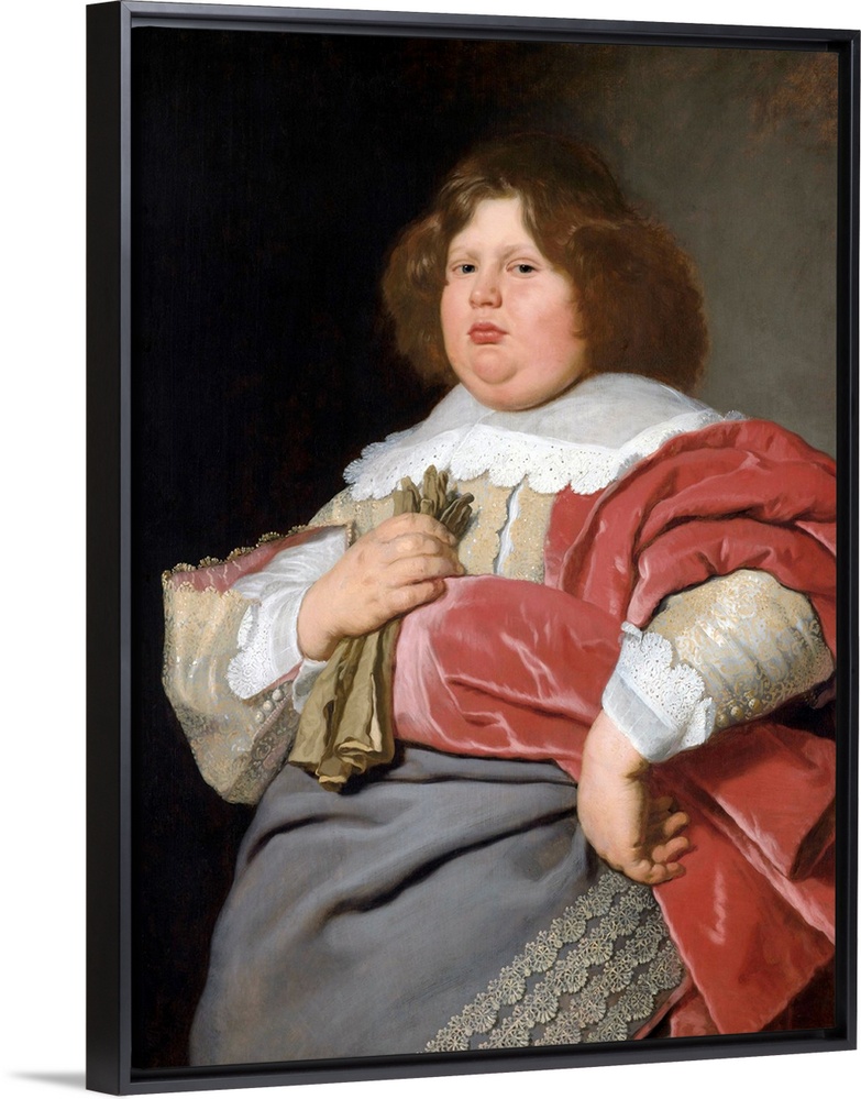 <p>Portrait of Gerard Andriesz Bicker, by Bartholomeus van der Helst, c. 1647-70, Dutch oil painting. Twenty-year-old Gerard Bicker was painted by van der Helst in the same year as his father Andries. Contrasting with the black clothing with an old-fashioned ruff, the obese young Gerard wears a colorful and showy outfit with a flat collar and elegant gloves.</p>
