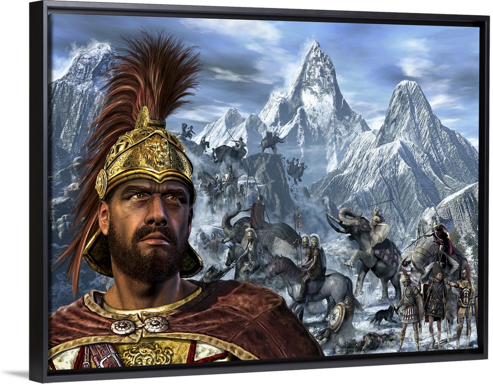 <p>Portrait of Hannibal and his troops crossing the Alps.</p>