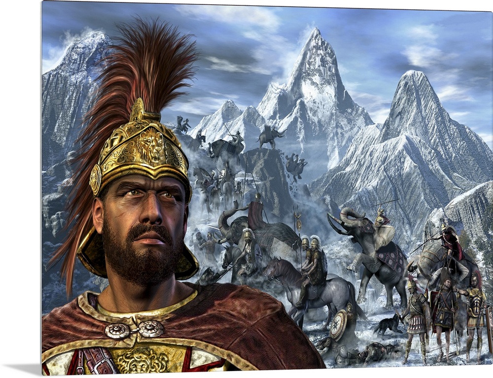 <p>Portrait of Hannibal and his troops crossing the Alps.</p>