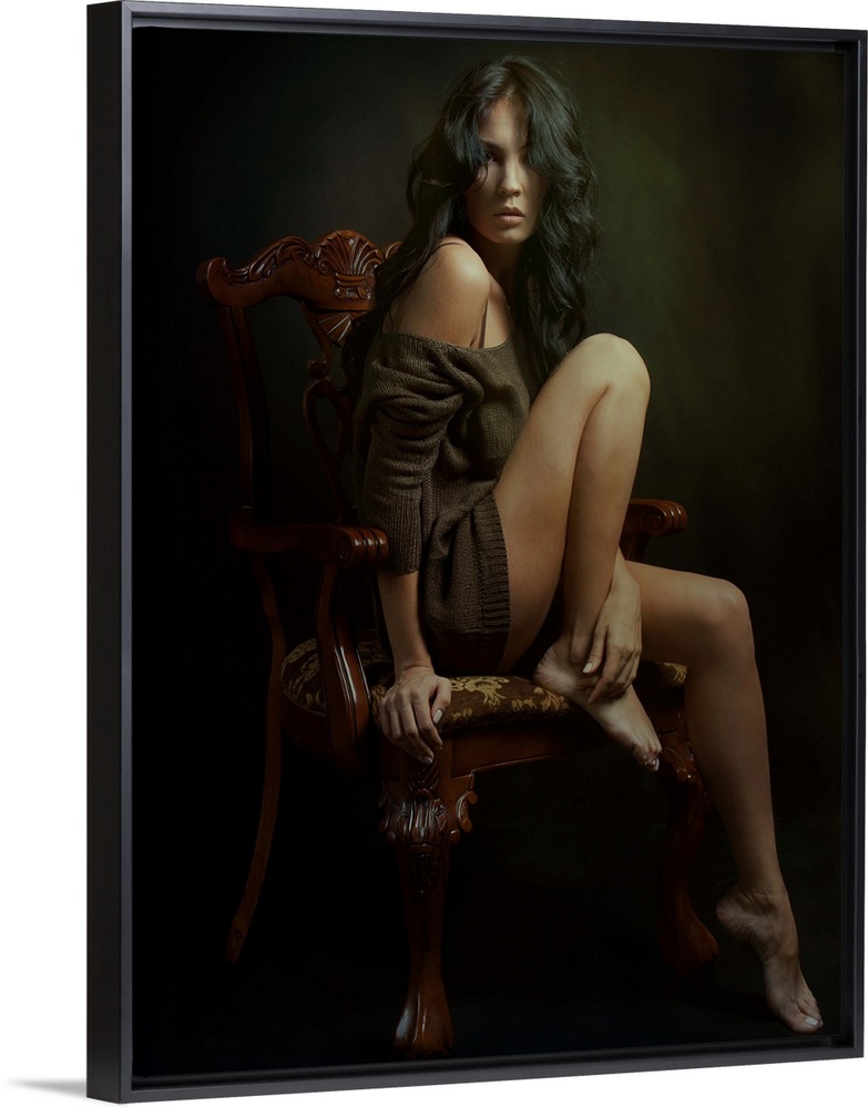 <p>Portrait of a stunning woman with long dark hair in an ornate chair.</p>