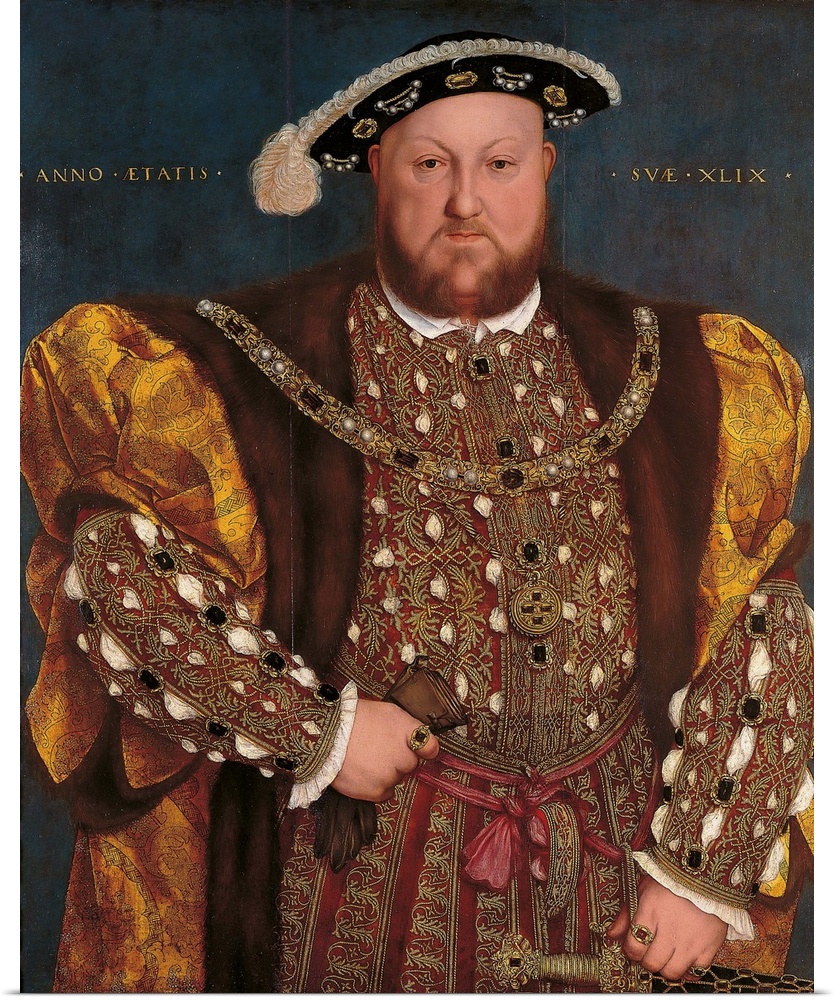 <p>Portrait of Henry VIII, by Hans il Giovane Holbein, 1539 - 1540 about, 16th Century, oil on panel, cm 88,5 x 74,5 - Italy, Lazio, Rome, National Gallery of Ancient Art, on deposit at the National Gallery of Modern Art. All. Bearded Henry VIII. Official re</p>