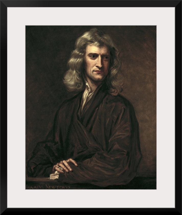 <p>BARLOW, Thomas Oldham (1824-1895). Portrait of Isaac Newton. 1863. Portrait executed after an original by Sir Godfrey Kneller in 1689. Oil on canvas. UNITED KINGDOM. London. The Science Museum. -</p>