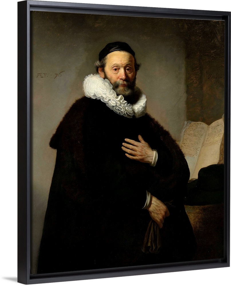 <p>Painting by Rembrandt of a portrait of Johannes Wtenbogaert.</p>