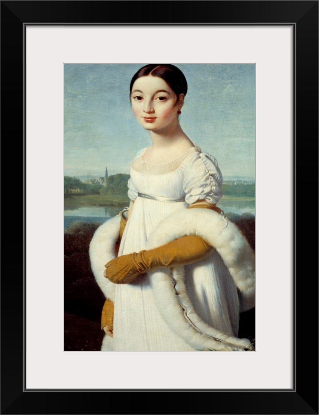<p>Portrait of Mademoiselle Caroline Riviere : The young woman is dressed in the fashion of the First Empire. Painting by Jean Auguste Dominique Ingres (1780-1867) 1805. 1x 0,7 m. Louvre Museum, Paris</p>