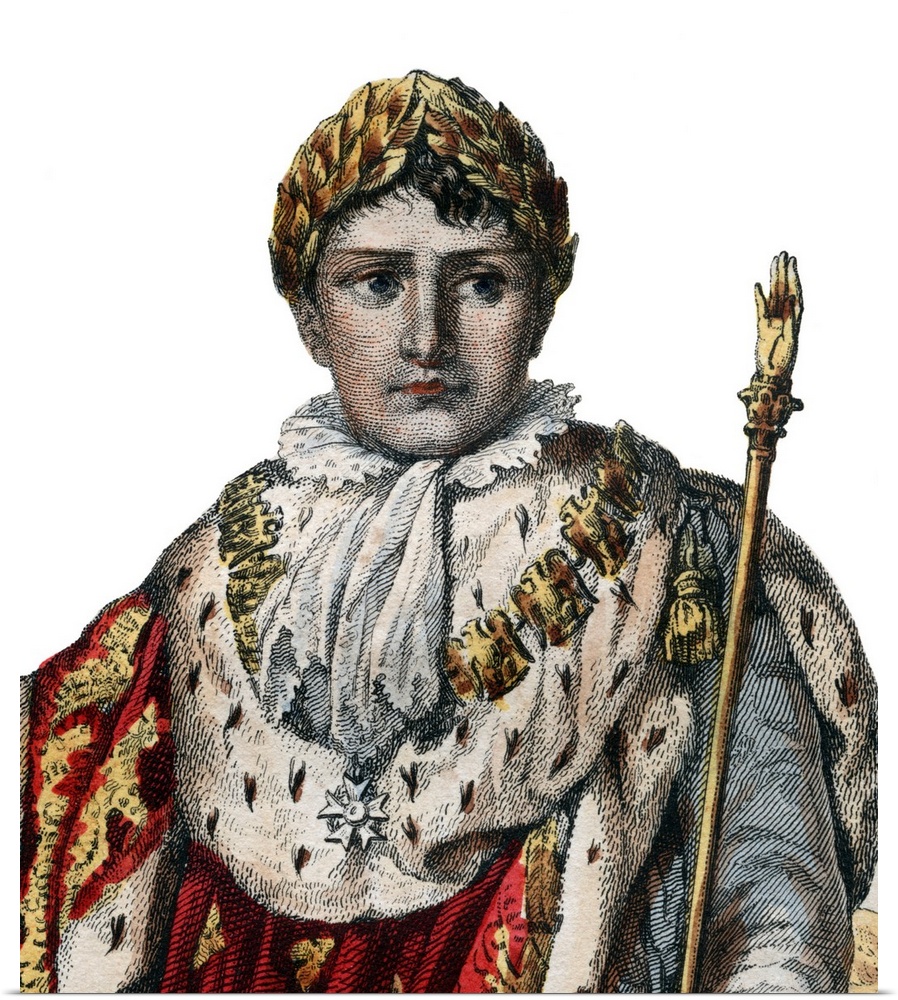<p>Portrait of Napoleon I (Napoleon Bonaparte) (1769-1821), Emperor of the French, in imperial vestments by French School, (19th century).</p>