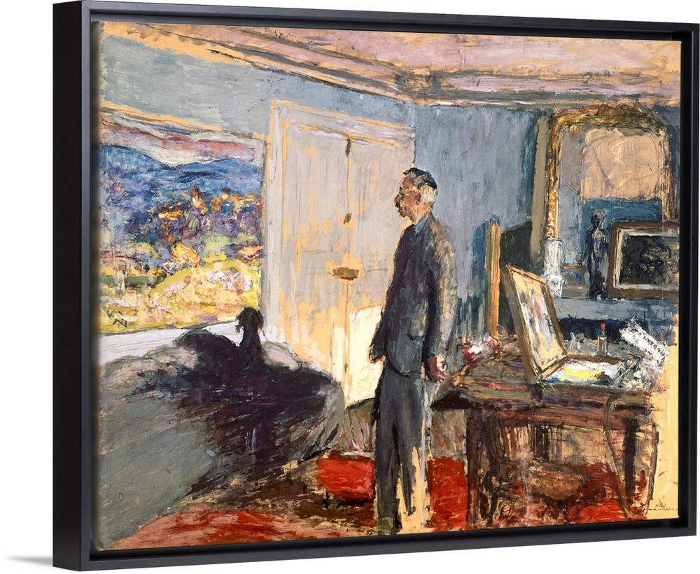 <p>Sketch of the Portrait of Pierre Bonnard, by Edouard Vuillard, 1930, 20th Century, oil on cardboard, France, Paris, Musee d'Art Moderne de la Ville de Paris. Whole artwork view. The French painter Pierre Bonnard looking at a picture on the wall in an atelier. A dog sitting on the sofa., Edouard Vuillard, Sketch of the Portrait of Pierre Bonnard, XX d.C., Oil on canvas,</p>