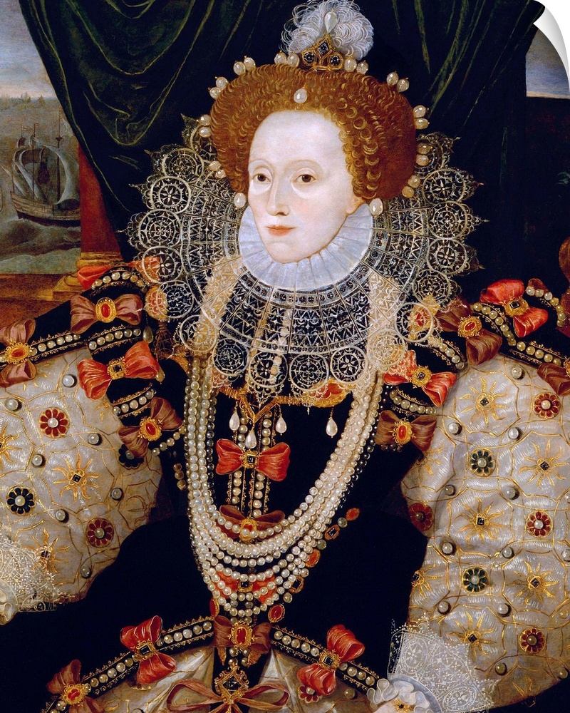 <p>Portrait of Queen Elizabeth I of England (the Armada Portrait), unknown artist, c. 1588, oil on panel, 38 1/2 in. x 28 1/2 in (97.8 mm x 72.4 cm), National Portrait Gallery, London.</p>