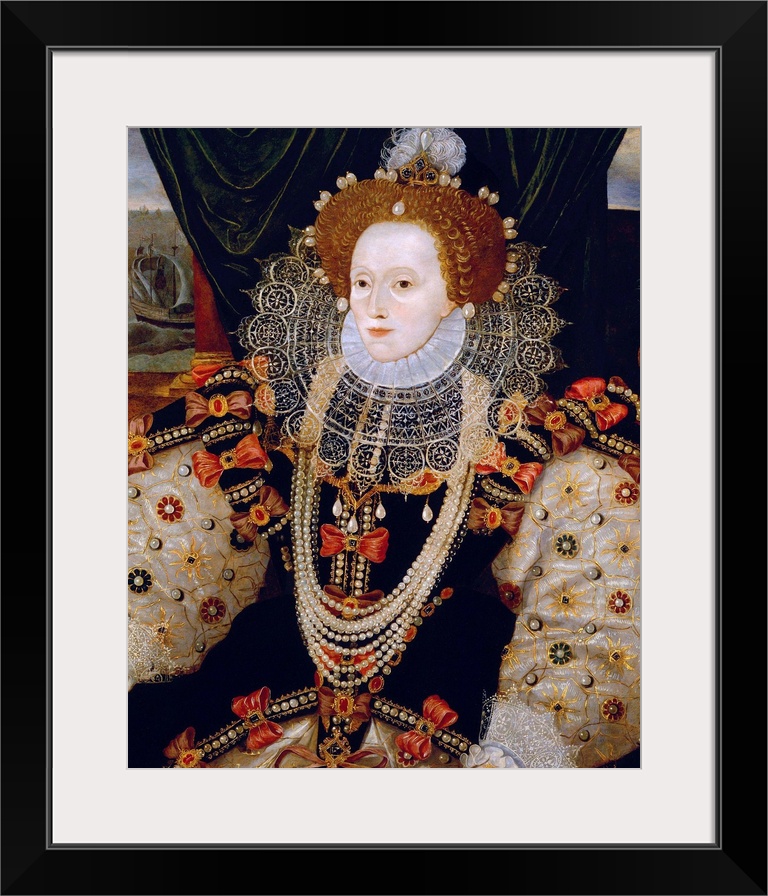 <p>Portrait of Queen Elizabeth I of England (the Armada Portrait), unknown artist, c. 1588, oil on panel, 38 1/2 in. x 28 1/2 in (97.8 mm x 72.4 cm), National Portrait Gallery, London.</p>