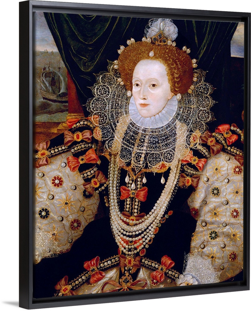 <p>Portrait of Queen Elizabeth I of England (the Armada Portrait), unknown artist, c. 1588, oil on panel, 38 1/2 in. x 28 1/2 in (97.8 mm x 72.4 cm), National Portrait Gallery, London.</p>