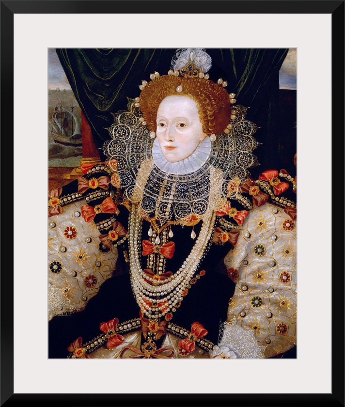 <p>Portrait of Queen Elizabeth I of England (the Armada Portrait), unknown artist, c. 1588, oil on panel, 38 1/2 in. x 28 1/2 in (97.8 mm x 72.4 cm), National Portrait Gallery, London.</p>