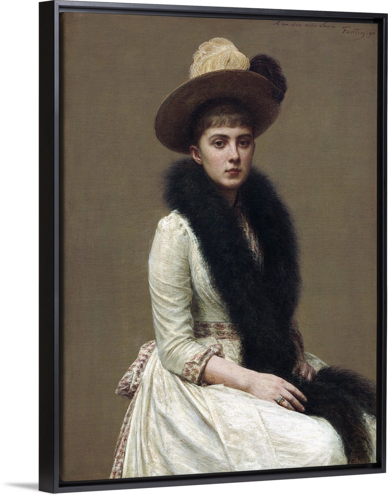 <p>Portrait of Sonia, by Henri Fantin-Latour, 1890, French painting, oil on canvas. Portrait of the artist's niece is painted with attention to texture in a harmony of browns. Fantin-Latour was an intimate of the impressionists, but exhibited at the Salon an</p>