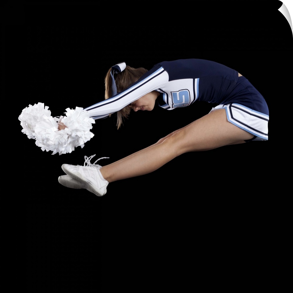 <p>Portrait of teenage cheerleader girl (16-17) jumping</p>