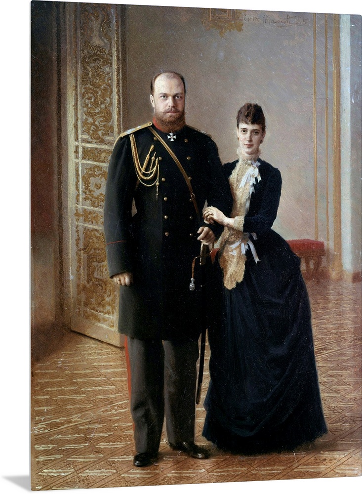 <p>Full-length portrait of Tsar Alexander III of Russia (1845-1895) with his wife Maria Fedorovna. Painting by Ivan Nikolaevich Kramskoi (Kramskoy) (1837-1887), 1885. Peterhof Castle, St. Petersburg, Russia</p>