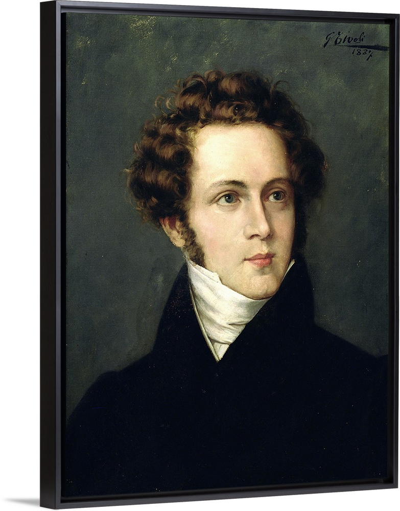 <p>Portrait of Vincenzo Bellini (1801-1835) 1887 (oil on canvas) by Italian School, (19th century); Museo Civico, Bologna, Italy; Italian</p>