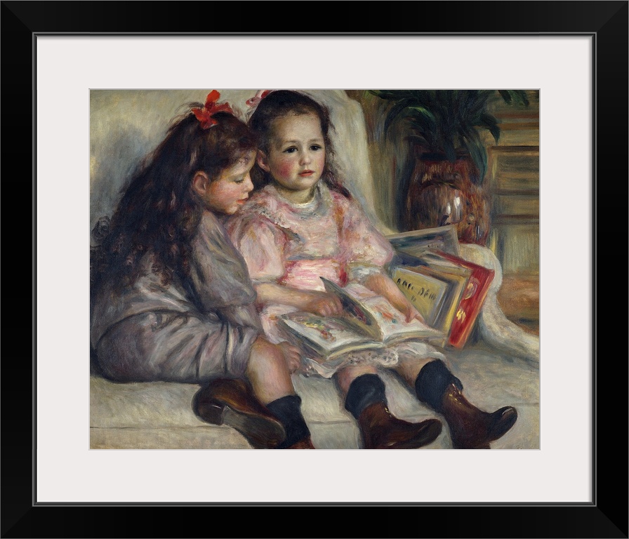 <p>Portraits of children (or The Children of Martial Caillebotte). 1895. Two girls reading. Painting by Pierre Auguste Renoir (1841-1919).</p>
