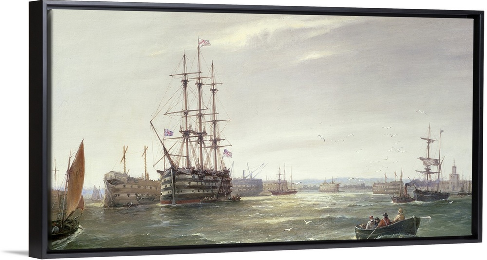 <p>BAL15693 Portsmouth Harbour: HMS 'Victory' among the Hulks, 1892 (oil) by Roe, Robert Ernest (fl.1868-75); Private Collection; English, out of copyright</p>