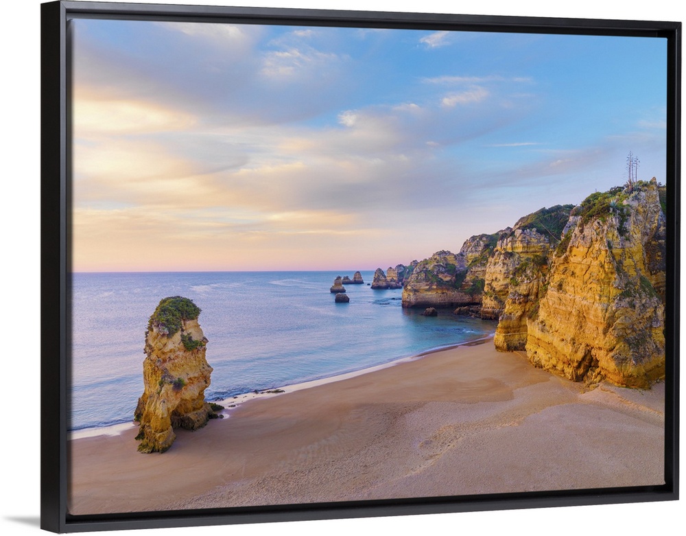 <p>Portugal, Algarve, Lagos, Praia da Dona Ana, rock formations at dawn</p>