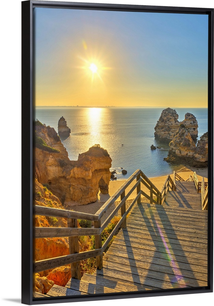 <p>Portugal, Algarve, Lagos, sunrise over Camilo Beach (Praia do Camilo)</p>